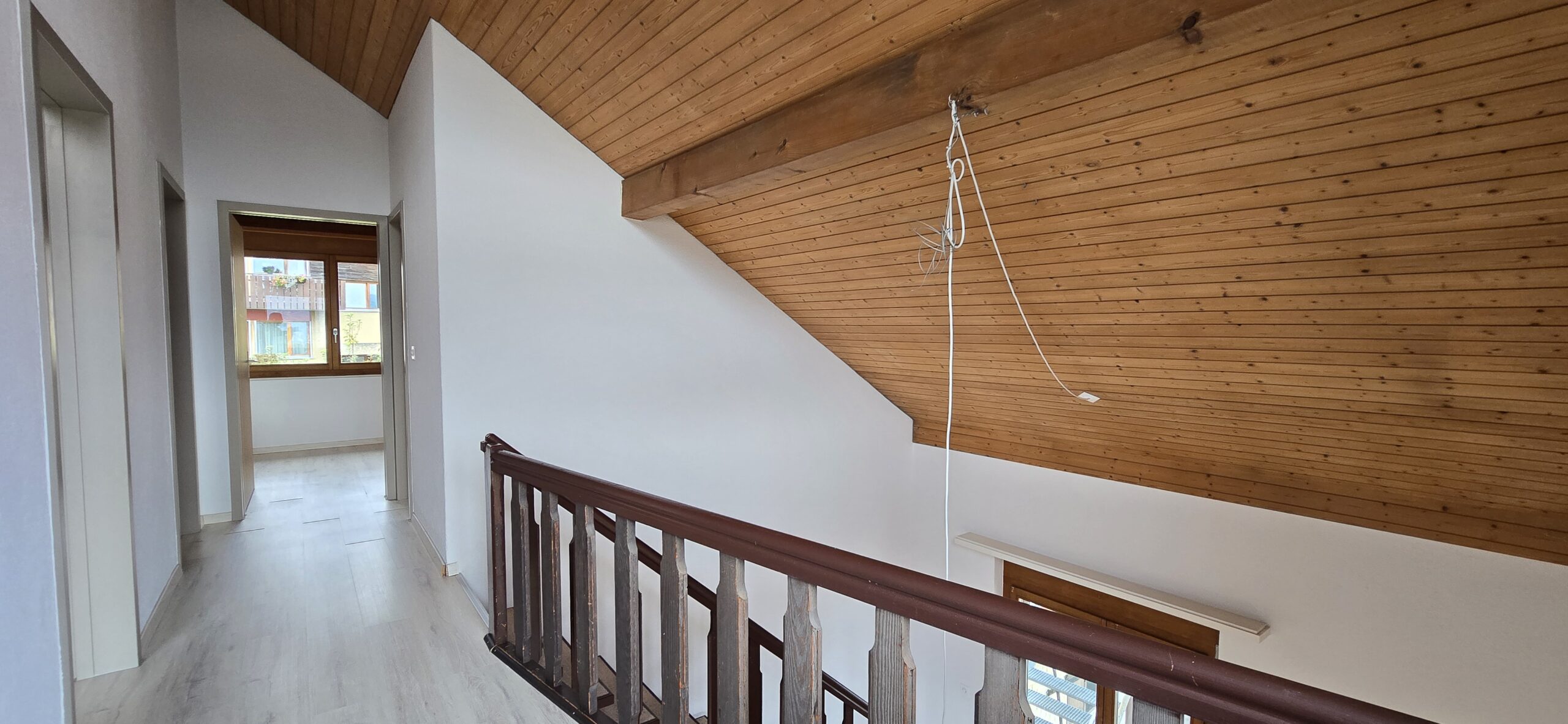 Das obere Geschoss mit Galerie besticht durch seinen gemütlichen Charme und die Dachschräge. Hier erwarten Sie drei vielseitig nutzbare Zimmer, die sich perfekt als Schlaf-, Kinder- oder Arbeitsräume eignen. Ein zweites, praktisches Badezimmer mit Badewanne rundet diese Etage ab und sorgt für zusätzlichen Komfort.