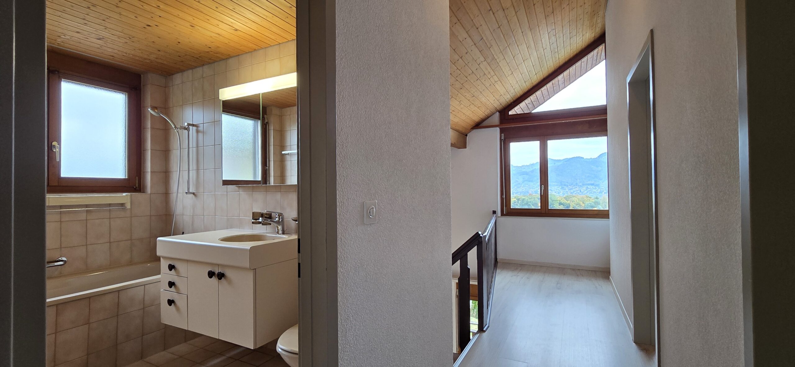 Stellen Sie sich vor: Jeden Morgen erwachen Sie mit einem atemberaubenden Blick, der sich über den glitzernden Thunersee, die charmante Stadt Thun und die majestätischen Berner Alpen erstreckt. Diese unvergleichliche Kulisse erwartet Sie in dieser bezaubernden 5,5-Zimmer-Maisonette-Wohnung, die an einer sanft erhöhten Lage über dem See thront, eingebettet in die idyllische Landschaft des Strättlighügels in Gwatt. Hier ist die Natur Ihr ständiger Begleiter und schenkt Ihnen ein Panorama, das Sie jeden Tag aufs Neue begeistern wird.